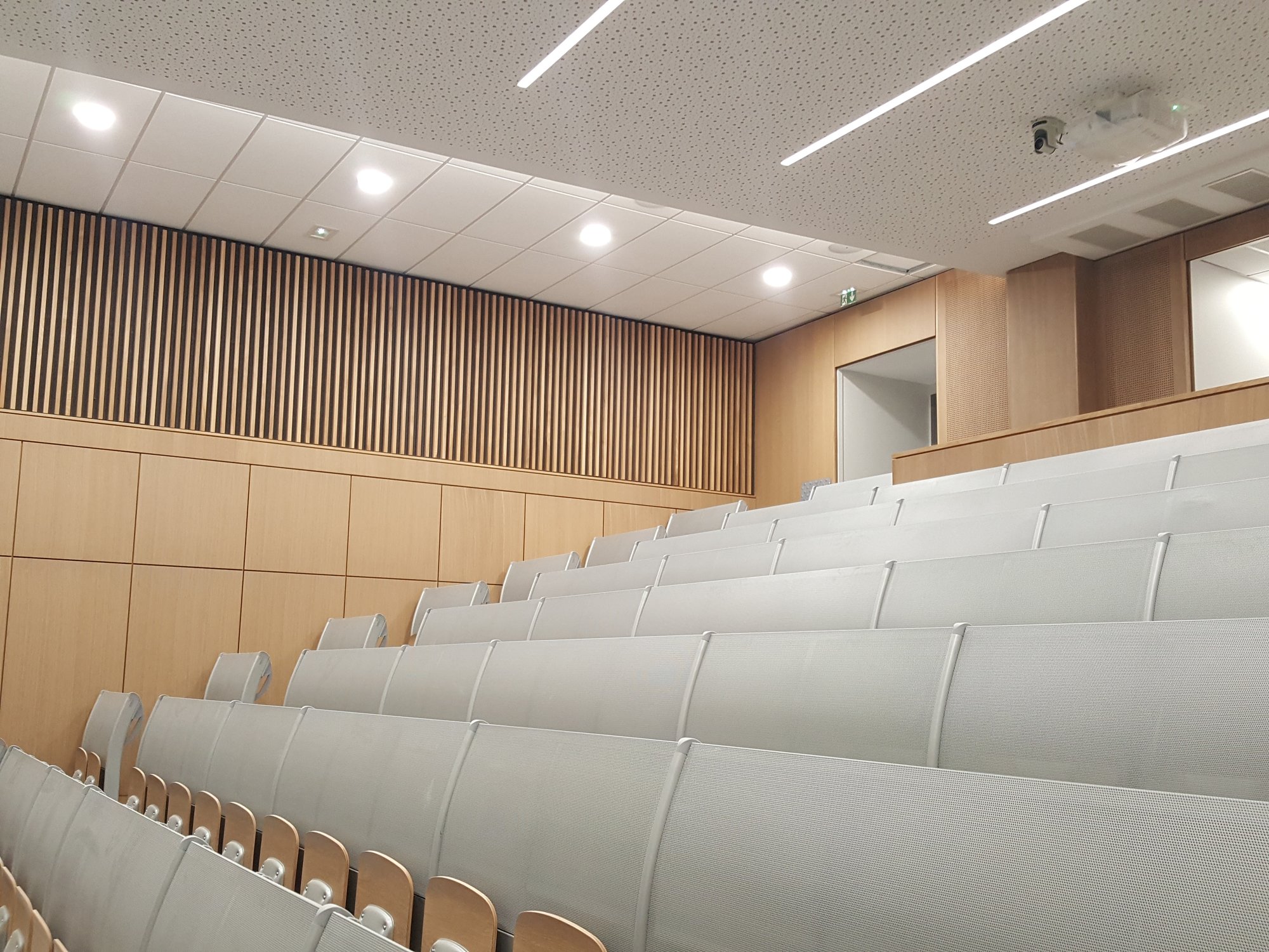 Avancement chantier. Après les études de conception, le bureau d'étude fluide Paris Calther est en charge du suivi de chantier pour la restructuration complète d'un amphithéâtre de 96 places en sous-sol pour l’École Nationale Supérieur de Chimie de Paris.