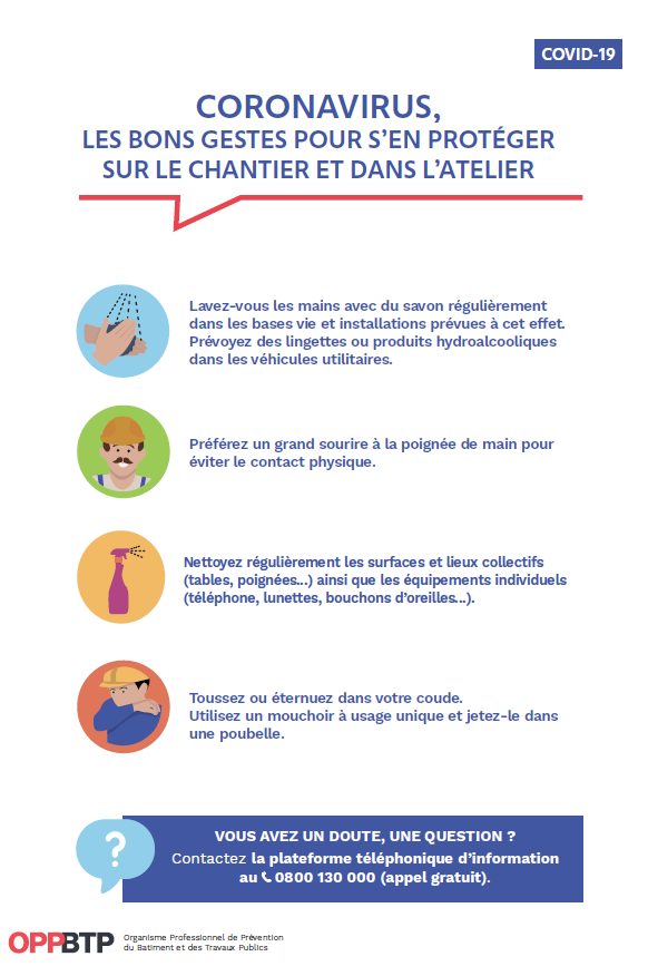 Le guide mis à jour au 29 mai est téléchargeable gratuitement ici : GUIDE DE PRÉCONISATIONS DE SÉCURITÉ SANITAIRE POUR LA CONTINUITÉ DES ACTIVITÉS DE LA CONSTRUCTION EN PÉRIODE D’ÉPIDÉMIE DE CORONAVIRUS COVID-19